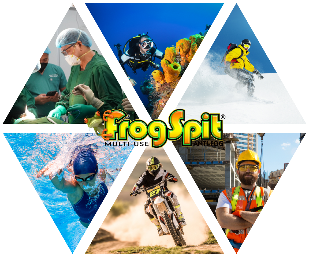 Frog Spit is the safest “Green” Earth Friendly anti-fog available, containing NO harmful silicone, alcohol or other petroleum distillates found in many anti-fogs. Easy to apply, Frog Spit anti-fog wipes and solutions were specifically designed as an “Apply and Let Dry” product requiring no rinsing or buffing. Frog Spit® is specially formulated to simply apply and let dry unlike other brands on the market that require rinsing or buffing, which can in-effect remove much of the just-applied anti-fog coating. Frog Spit® anti-fog wipes and solutions go on evenly, in a single transparent layer providing maximum protection against fogging, and is safe and effective for use on any type of glass or plastic optics, like masks, goggles, face shields and protective eye wear.